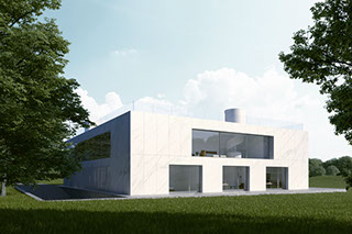 This project is an attempt to reinterpret the old theme of mansion and adjust it to contemporary aesthetical and functional needs. Design's ambition was to create house that, while being luxurious, visually pleasing and great to live in, will be also devoid of all the things that are unnecessary. House that is not trying to follow passing fashion, but rather strives to create clear and solid presence in the landscape by using very simple means.